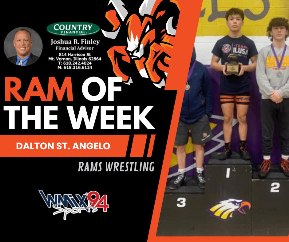 Freshman Dalton St. Angelo is this week’s Josh Finley Country Financial Ram of the Week after a dominant performance at the Steve Bradley Invitational on Saturday, December 6, at Civic Memorial High School in Bethalto.