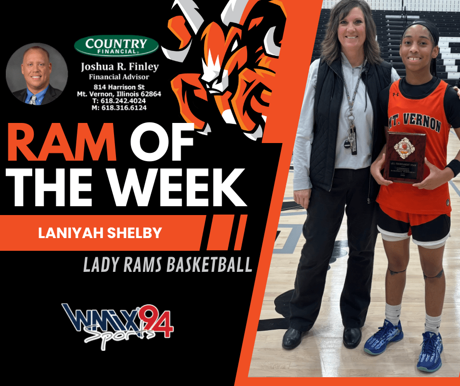 Sophomore guard LaNiyah Shelby is this week’s Josh Finley Country Financial / WMIX Sports Ram of the Week after a dominant performance at the Carbondale MidWinter Tournament, where she helped lead the Lady Rams to a third-place finish and earned All-Tournament Team honors.
