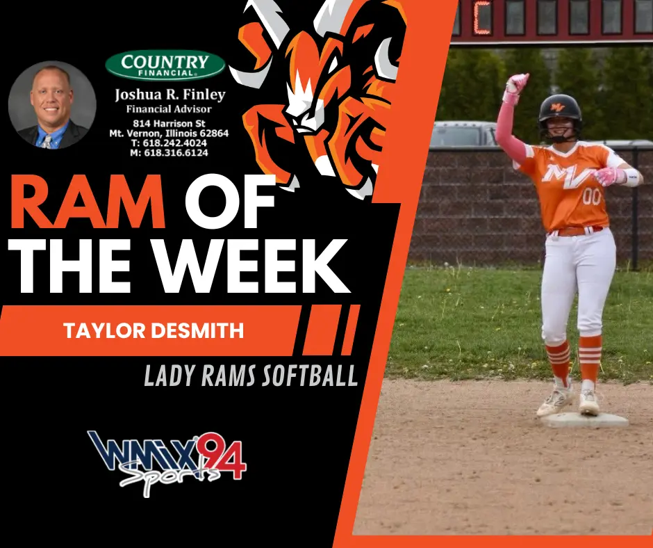 Mt. Vernon — This week’s Josh Finley Country Financial / WMIX Sports Ram of the Week honors a dominant all-around performance from Lady Rams junior Taylor DeSmith, who made her impact felt both at the plate and in the circle.